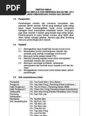 Minit Mesyuarat Exco 2014. KERTAS KERJA PERTANDINGAN MEWARNA TAHAP 1 PERTANDINGAN KOLAJ TAHAP 2 SAMBUTAN BULAN KEBANGSAAN 2018 SAYANGI MALAYSIA ANJURAN PANITIA PENDIDIKAN SENI VISUAL PADA 29 OGOS 2018 TEMPAT BILIK DARJAH MASA 230-430 PTG Pendahuluan Unit Kokurikulum bersama-sama Panitia Pendidikan Seni Visual akan. Kertas kerja minggu anti dadah.